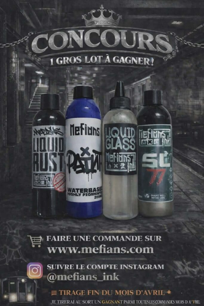 - 150€ d’achat : 1 Tar 200ml, 1 Liquid Rust 200ml, 1 encre noire 200ml, 1 appearance 200ml, 1 Ultimate chrome (2 au choix)